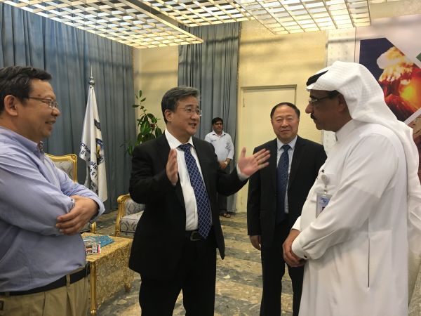 4月19日,中核集團總經理余劍鋒一行到訪沙特地質調查局,與局長侯賽因·奧泰比共同回顧了現有合作項目進展,并就下一步建立全方位合作伙伴關系進行了商談。
