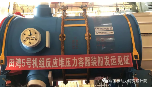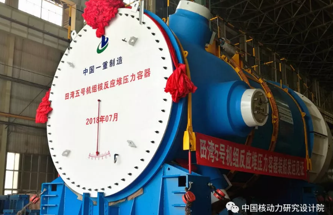 7月4日,在江蘇核電有限公司、中國核電工程有限公司、中國核動力研究設計院等多家單位的見證下,由核動力院設計、采購的田灣5號機組反應堆壓力容器在中國第一重型機械股份公司完成裝船發運。