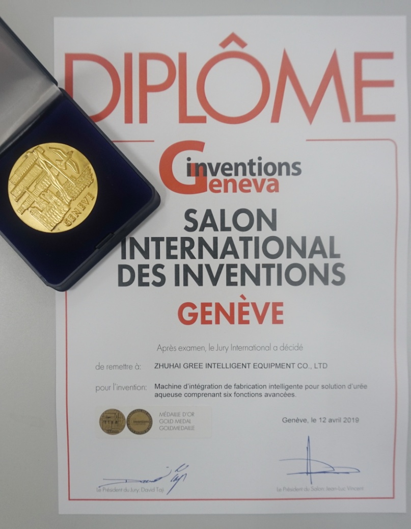 格力車用尿素水溶液智能制配一體機獲得了日內瓦發明展金獎。該產品搭載了格力超純水制備、空氣能熱泵節能加熱、溶液高效循環攪拌、智能監測、溶液自動存儲、便捷加注的六位一體核心技術,解決了傳統技術模式存在的加注不方便、白色垃圾污染、成本高昂、尿素溶液易變質等問題,實現了尿素水溶液生產技術的跨越式發展,開創了國家乃至全球處理氮氧化物污染的新技術流派,在凈化汽車尾氣、改善生態環境、減輕消費者負擔、有助于政府監管等方面具有重大社會價值。