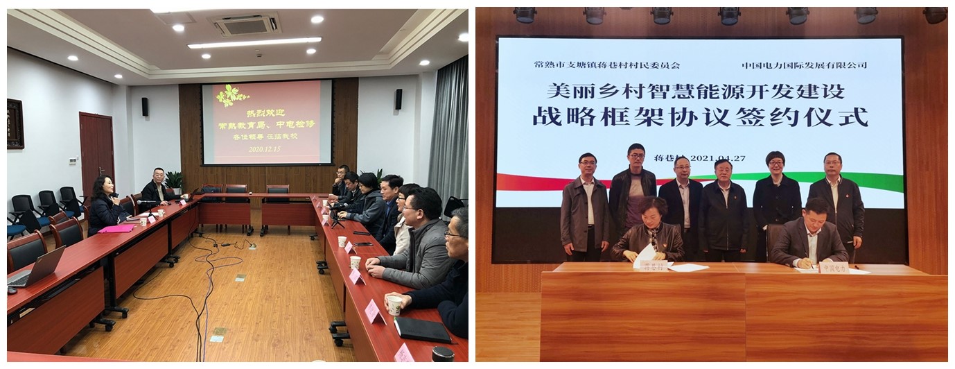 2021年4月27日,公司代表中國(guó)電力與“全國(guó)農(nóng)村現(xiàn)代化建設(shè)示范村”常熟市蔣巷村簽訂美麗鄉(xiāng)村智慧能源開發(fā)建設(shè)戰(zhàn)略框架協(xié)議。雙方將在智慧能源、智能微電網(wǎng)、數(shù)字化建設(shè)等方面開展全方位深度合作,樹立清潔能源企業(yè)與美麗鄉(xiāng)村合作典范,打造“碳中和”農(nóng)村樣板,積極落實(shí)國(guó)家“3060”碳達(dá)峰碳中和目標(biāo)及建設(shè)生態(tài)宜居鄉(xiāng)村戰(zhàn)略。