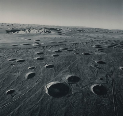 內華達試驗場中留下的彈坑。在上個世紀,此地平均每年會經歷十幾次核爆試驗。圖源:Art in America。