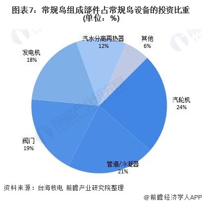 根據臺海核電的披露,一般而言,常規島設備中,汽輪機、管道/冷凝器、閥門都是投資的重點,其中汽輪機占比為24%,管道/冷凝器占比為21%,常規島閥門占常規島設備投資中的比例大概為19%。