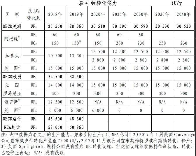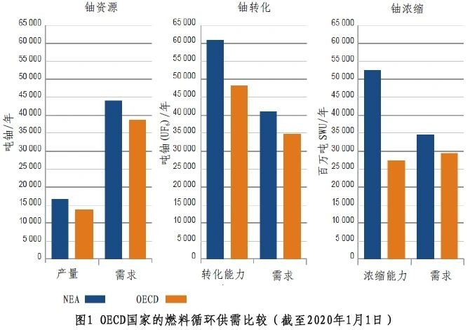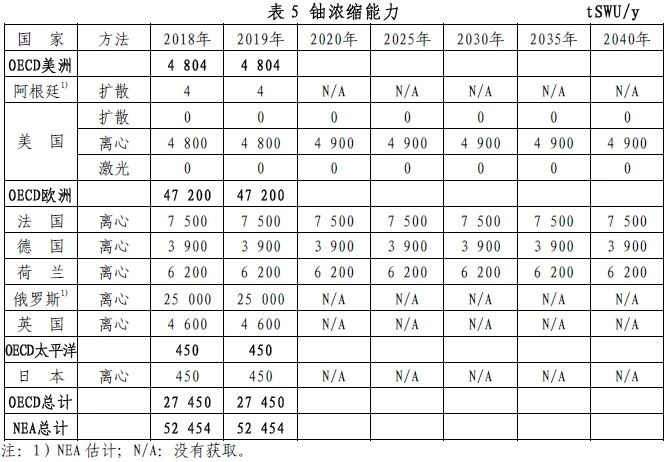 2019年,OECD/NEA歐洲地區的鈾轉化和濃縮能力均超過需求;OECD/NEA美洲地區的鈾濃縮服務需要依賴進口;太平洋地區的鈾轉化和鈾濃縮服務均需進口。