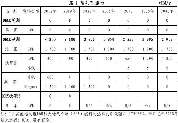 由于新安全標準的實施,包括需要新建一座冷卻塔,日本六個所后處理廠的完成時間計劃推遲至2022~2023年。俄羅斯采礦與化學聯合廠(MCC)獲得了用于工業生產鈾钚混合氧化物燃料的五年許可證,該燃料將用于貝羅亞爾斯克核電站4號機組的BN-800快堆。