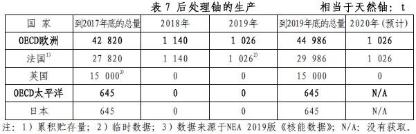 與過去幾年一樣,鈾資源的進口對于滿足NEA國家和OECD國家反應堆的需求來說非常必要。2019年,鈾需求除了通過重要的鈾礦生產來滿足之外,還可以利用二次資源進行補充,包括儲備和庫存、濃縮減料、尾礦再濃縮或利用乏燃料后處理回收鈾钚來制造新的核燃料。