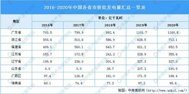 31省市核能發電量排名情況