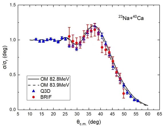 23Na+40Ca彈性散射角分布