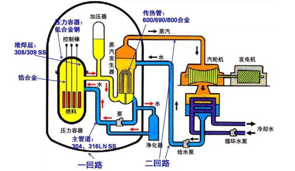 核燃料元件棒最核心的材料是燃料芯塊,它由二氧化鈾組成,是反應產生熱量的主要原料。天然鈾是以礦石形式存在的。鈾礦經過勘探開采、水冶、鈾轉化與鈾濃縮等過程,最終送往核燃料加工廠制造出核燃料元件。中國的核燃料制造和供應目前由中核集團下屬的中國核燃料有限公司獨家供應,中核集團是中國唯一擁有完整核燃料循環產業的企業。國家授權中核集團對核燃料、鈾產品的生產經營和進出口實行專營。其中,加工核燃料組件的資質及能力國內僅中核集團旗下的中核建中和中核北方兩家公司具備,除了首爐等必須從國外進口的核燃料以外,所有國產核燃料組件只能從中核建中、中核北方進行采購。中核集團的全產業鏈布局將為公司發展提供燃料采購、加工、工程設計、建設、設備進口、技術服務、乏燃料運輸及后處理等全方位支撐。中廣核和國家電投也在布局相關的核燃料產業。核島設備是承擔熱核反應的主要部分,技術含量最高,對安全設計的要求也最高。