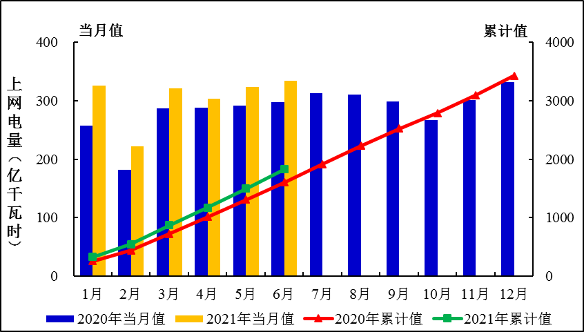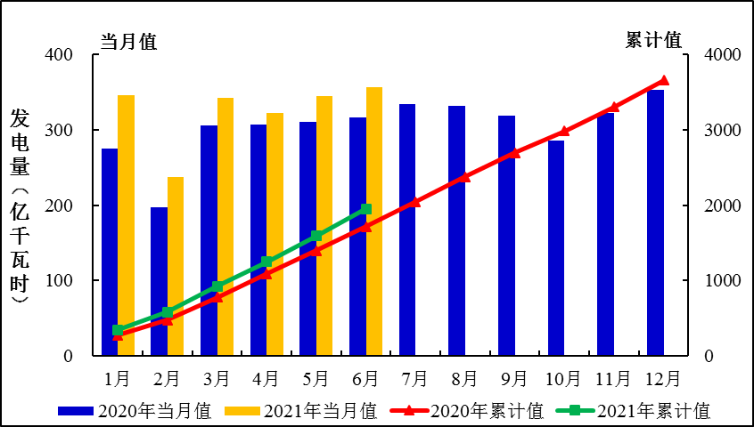 ▲圖1 2021年1-6月全國(guó)發(fā)電量統(tǒng)計(jì)分布