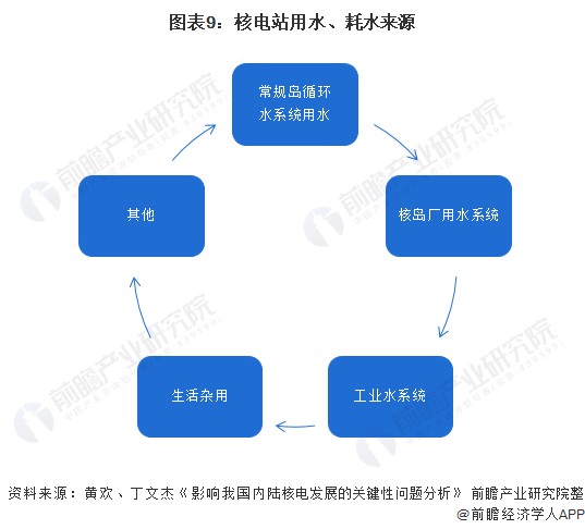 其次,在于內陸核電廠的用水問題。核電站的用水、耗水主要涉及到常規島循環水系統用水、耗水,核島廠用水系統、工業水系統等等。一方面,核電廠的堆芯需得到充足的冷卻,才不會出現嚴重運行問題,沿海核電廠因靠近大海,可以充分利用海水進行冷卻;但內陸核電廠只有少數的河流、湖泊具備相同冷卻條件;