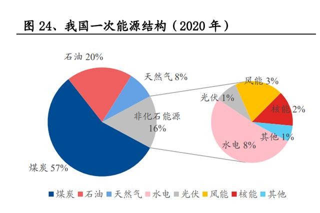 碳中和背景下,能源結(jié)構(gòu)加速低碳轉(zhuǎn)型。2020 年 12 月的氣候雄心峰會上,進一步表示到 2030 年單位 GDP 的二氧化碳排放比 2005 年下降 65%以上,非化石能源占一次能源比 例達到 25%左右。
