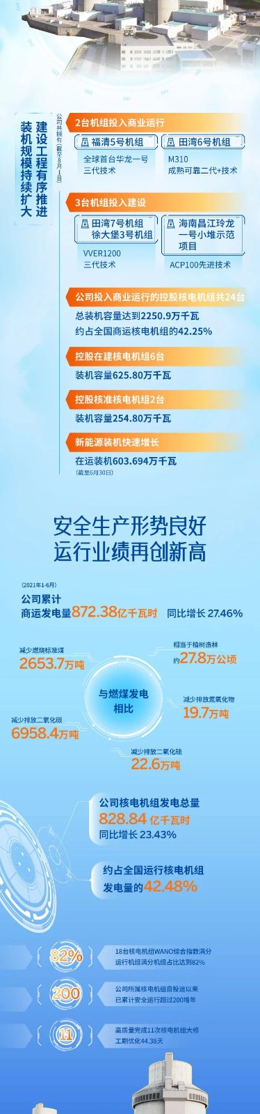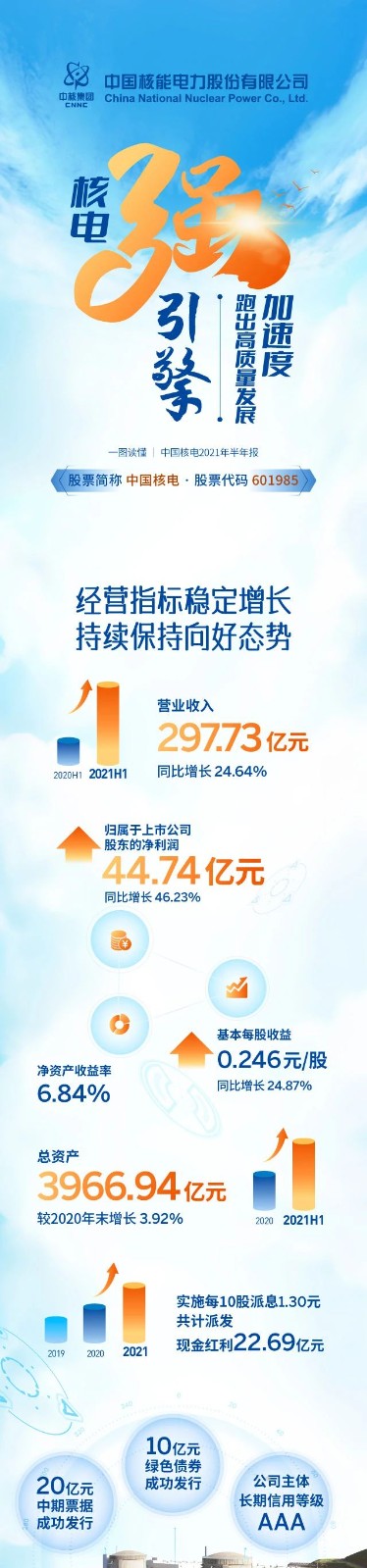 一分鐘速覽中國核電(601985.SH)2021半年報!營業收入297.73億,業績再創新高!