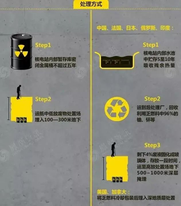 先將其中還有利用價值的元素回收,繼續(xù)制造燃料或者其他用途。(后處理)