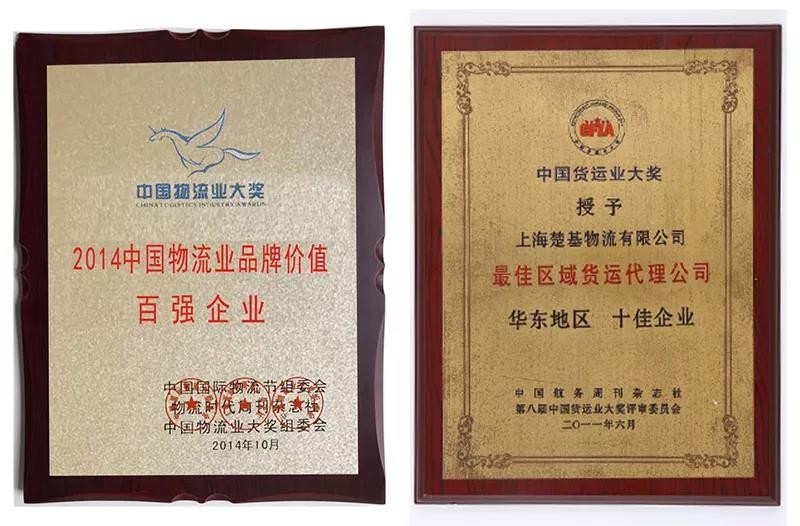 2017-2018年,榮獲電力大件運輸企業總承包乙級資質,第五屆理事會--理事單位,智慧物流專業委員會副會長單位,ISEA國際航運企業聯盟發起單位、會員單位,上海市企業誠信創建活動組委會誠信創建企業;榮獲中國貨運代理品牌50強。