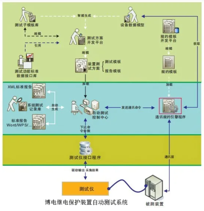 博電科技研發出的智能變電站測試設備覆蓋智能變電站站控層、間隔層、過程層,為智能變電站整站測試提供全面、系統、豐富的試驗手段。研發出的繼電保護自動測試系統可通過繼電保護測試儀電壓電流的實時輸出控制和MMS回采繼電保護裝置的遙信、遙測及動作報告等信息,實現了繼電保護裝置現場的遙信、遙測、遙控、保護定值和保護邏輯等繼電保護裝置的全方位自動測試。