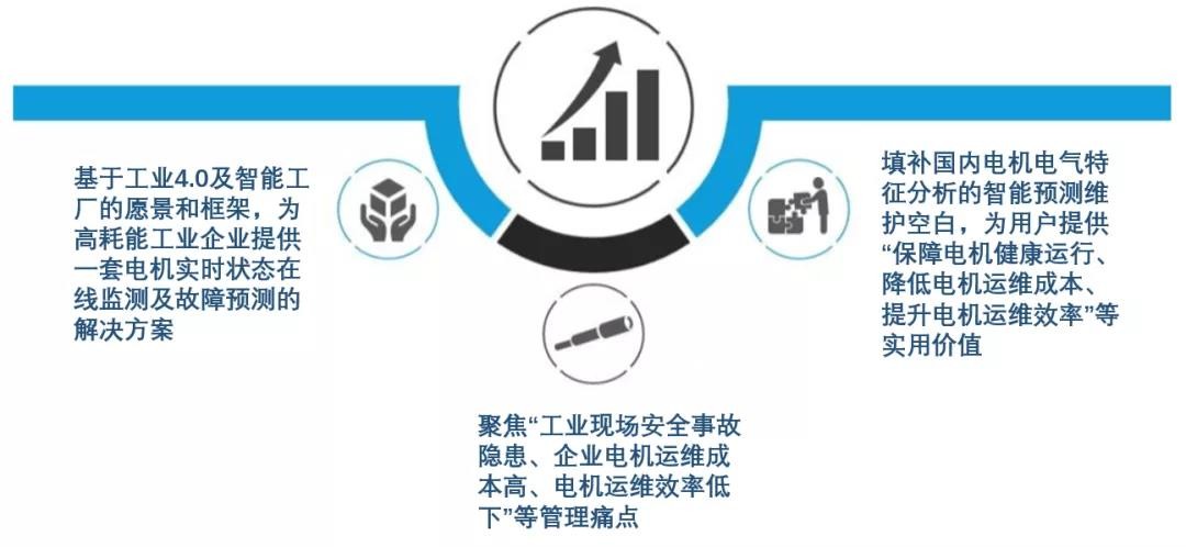 以工業互聯網核心技術為驅動,由電機狀態監測智能終端,電機狀態監測及故障預測系統軟件,以及支撐狀態監測和故障預測的算法和功能三部分組成的綜合系統平臺。