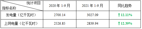 1) 石島灣核電廠1號機組于2021年8月21日首次裝料,截止9月底暫未并網發電,核電設備利用小時數和機組能力因子暫不適用統計。