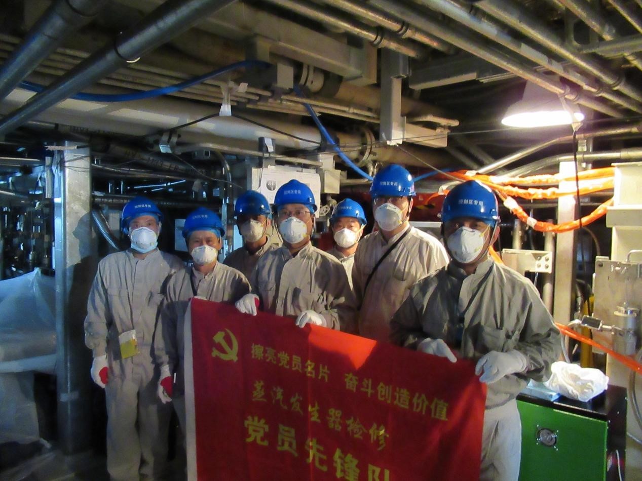 作為核電站關鍵核一級設備,蒸汽發生器一次側蓋板拆裝、堵板拆裝工作是大修主線任務。在黨員先鋒隊的帶領下,該專項工作組對每項工序進行反復推敲、有效分解,特別是堵板演練過程使用秒表計時,在穿著鉛衣、氣衣等防護設備的情況下,靜機班姜春曉做到僅35秒進出蒸發器水室,使受照劑量大幅降低。由于前期實操培訓演練準備充分、人員合理分工、現場實施有序,兩臺機組蒸發器檢修工作分別實現主線提前2.17小時、5.48小時,創造歷次大修最佳記錄,受山東核電大修指揮部通報表揚。