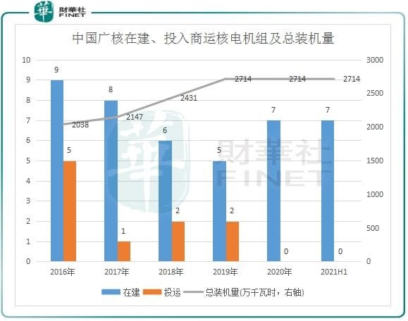 2020年以來,中國廣核沒有核電機(jī)組投入商運(yùn),造成總裝機(jī)容量維持在2714萬千瓦時(shí)的水平。