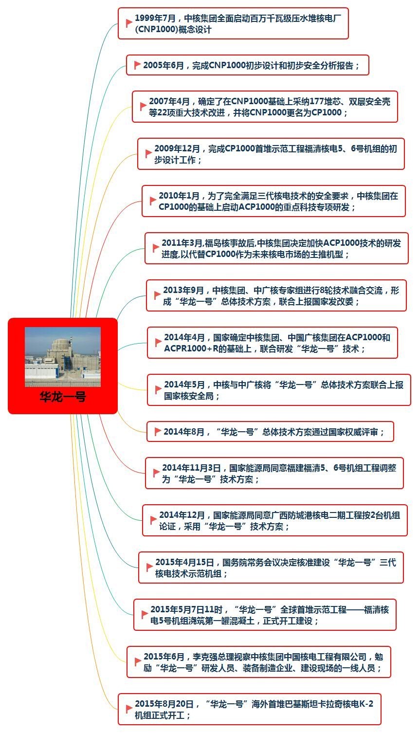 “華龍一號”技術起源可追溯到我國自行設計、建設、運營的首座核電站——秦山核電一期,技術源頭來自我國首艘核潛艇,其概念設計始于上世紀90年代末,歷經了10余年的研發論證和多次技術衍變。
