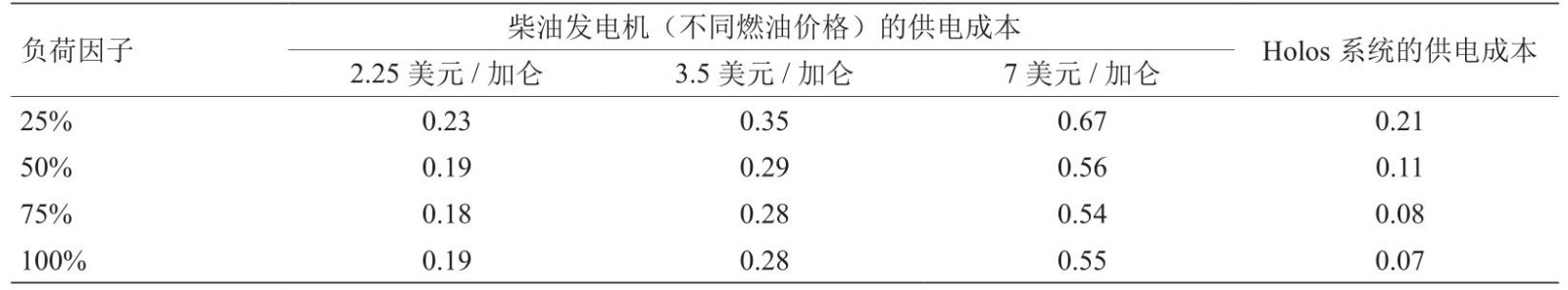表 2野戰應用條件下的供電成本對比 美元 / (kW·h)