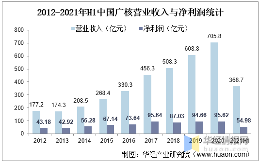 中國廣核電力股份有限公司是中廣核核能發電的唯一平臺,主營業務為建設、運營及管理核電站,銷售該等核電站所發電力,組織開發核電站的設計及科研工作。據統計,截至2021年上半年中國廣核營業收入為368.7億元,同比增長17.01%,凈利潤為54.98億元,同比增長5.63%。