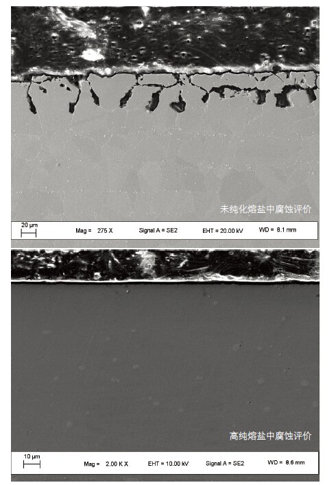 (2) 氟鹽腐蝕控制技術。建成氟化物熔鹽腐蝕評價平臺,系統開展了氟化物熔鹽腐蝕機制、堆用合金材料腐蝕評價與防護技術研究。通過熔鹽純化、合金成分優化及表面處理等技術,解決了氟鹽冷卻劑腐蝕控制難題(圖 3)。