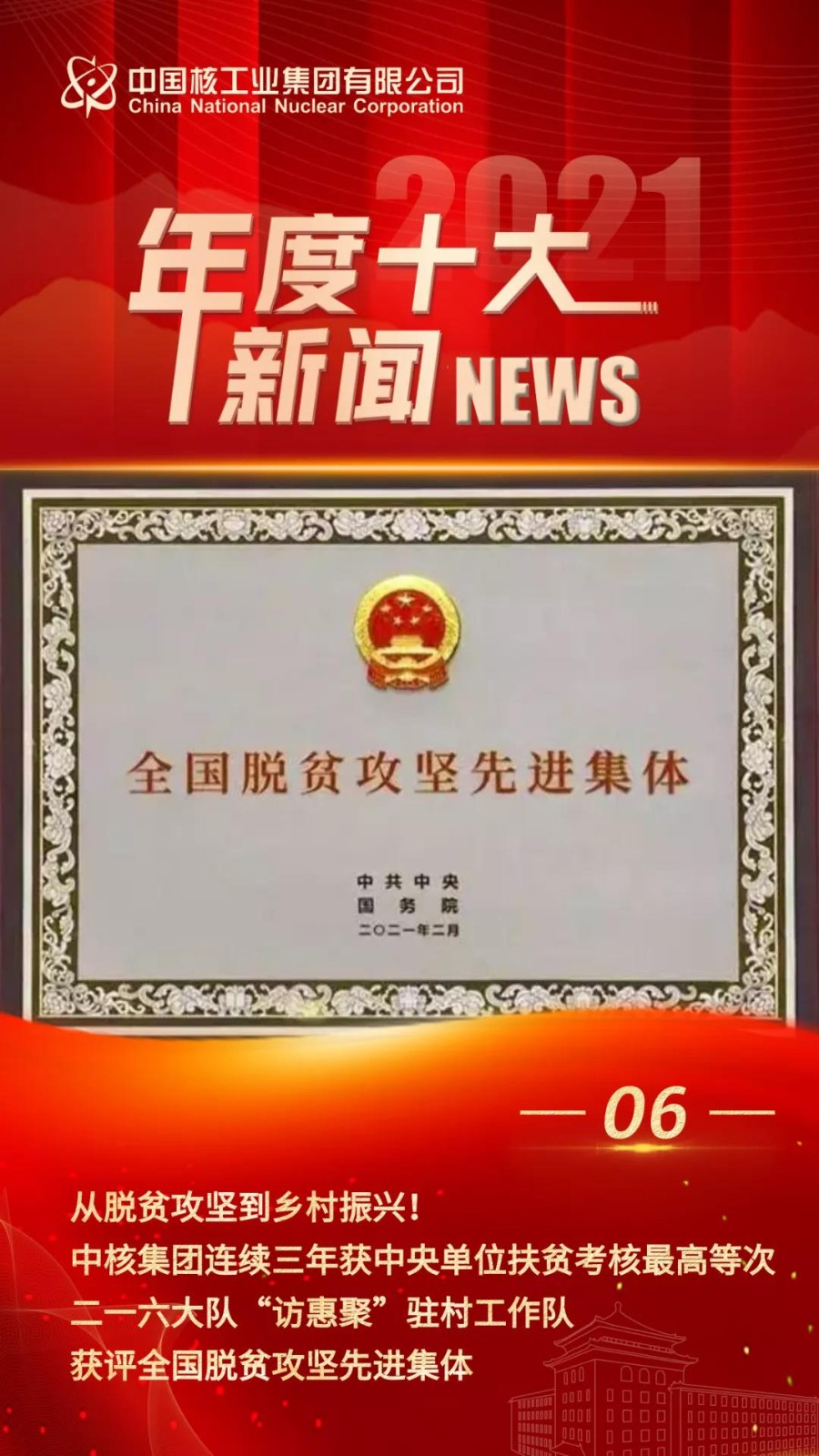2021年,中核集團(tuán)始終堅(jiān)持和加強(qiáng)黨的領(lǐng)導(dǎo),把落實(shí)黨中央鄉(xiāng)村振興戰(zhàn)略部署作為義不容辭的政治責(zé)任,派出百余名幫扶干部奮戰(zhàn)在鄉(xiāng)村振興一線,不斷強(qiáng)化產(chǎn)業(yè)協(xié)同發(fā)展,扎實(shí)推進(jìn)五大振興,助力脫貧攻堅(jiān)戰(zhàn)取得全面勝利、鄉(xiāng)村振興戰(zhàn)略開好新局,連續(xù)三年在中央單位定點(diǎn)扶貧成效評(píng)價(jià)中獲得“好”的最高等次,下屬單位核工業(yè)二一六大隊(duì)“訪惠聚”駐村工作隊(duì)獲全國脫貧攻堅(jiān)先進(jìn)集體稱號(hào)。8月17日,新華發(fā)電新疆阿爾塔什水利樞紐6臺(tái)機(jī)組全部并網(wǎng)發(fā)電。該工程順利建成將徹底解決葉爾羌河千年水患,使流域600萬人口受益,每年減少約1000萬人次防洪投入,估算年減少防洪投入1億元,對(duì)推動(dòng)新疆地區(qū)可持續(xù)發(fā)展、助力鄉(xiāng)村振興具有重要意義;12月29日,中核集團(tuán)定點(diǎn)幫扶地區(qū)最大能源項(xiàng)目100MW中核匯能同心興隆風(fēng)電全面建成發(fā)電。民族地區(qū)兩大清潔能源項(xiàng)目順利建成,對(duì)興邊富民、助力鄉(xiāng)村振興具有重要意義。
