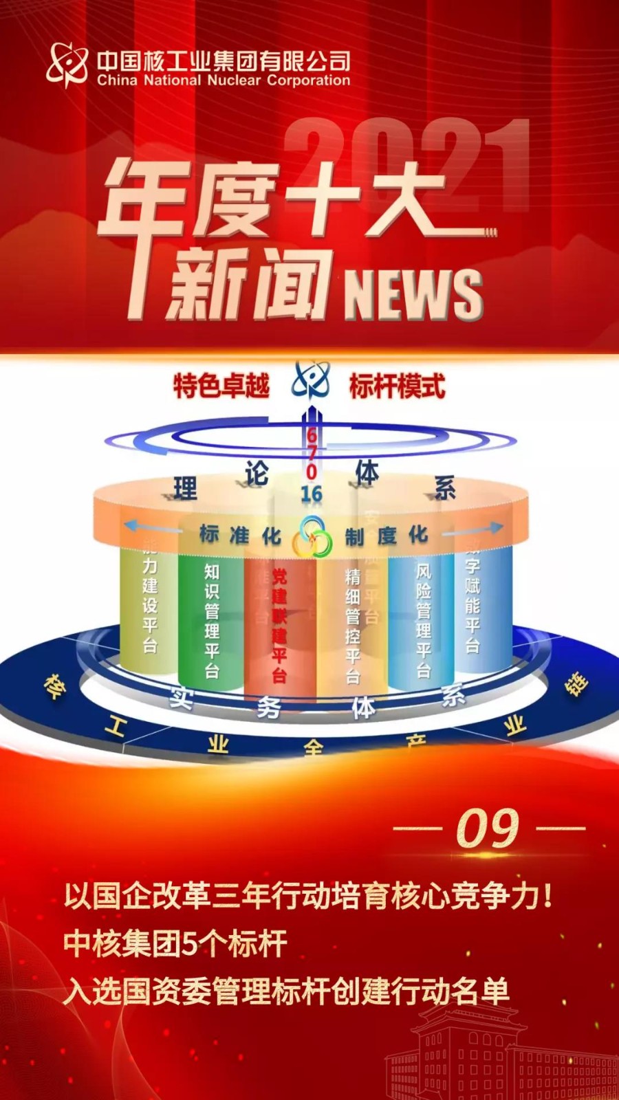 2021年7月,國資委公布了《國有重點(diǎn)企業(yè)管理標(biāo)桿創(chuàng)建行動(dòng)標(biāo)桿企業(yè)、標(biāo)桿項(xiàng)目和標(biāo)桿模式名單》,中核集團(tuán)5個(gè)標(biāo)桿成功入選。中核集團(tuán)是為數(shù)不多“三個(gè)標(biāo)桿”均入選的中央企業(yè),入選總數(shù)并列第一位。其中,中核集團(tuán)“六大控制七個(gè)零”高質(zhì)量精細(xì)化工程項(xiàng)目管理模式入選標(biāo)桿模式;中國核電、中國原子能入選標(biāo)桿企業(yè);中核集團(tuán)“三高三強(qiáng)”戰(zhàn)略規(guī)劃體系建設(shè)項(xiàng)目、“新時(shí)代先進(jìn)核科技創(chuàng)新體系建設(shè)項(xiàng)目”入選標(biāo)桿項(xiàng)目。