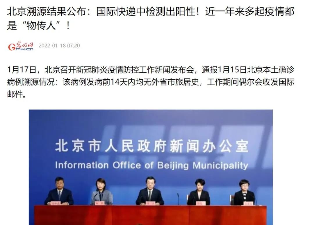 自天津爆發(fā)奧密克戎疫情以來,全國多地爆發(fā)疫情。1月15日,北京市海淀區(qū)接第三方檢測機構(gòu)報告一例新型冠狀病毒肺炎核酸檢測初篩陽性,根據(jù)北京召開新聞發(fā)布會通報該病例發(fā)病前14天內(nèi)均無外省市旅居史,工作期間偶爾會收發(fā)國際郵件,在國際快遞中檢測出陽性。