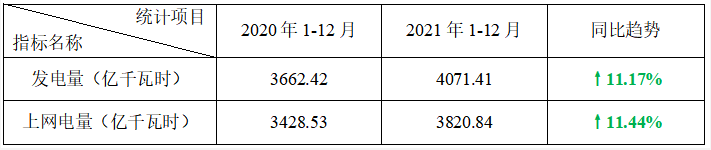 2)福清核電廠6號機組于2021年11月6日首次裝料,截止12月底暫未并網(wǎng)發(fā)電,發(fā)電量、上網(wǎng)電量、核電設(shè)備利用小時數(shù)和機組能力因子暫不適用統(tǒng)計。