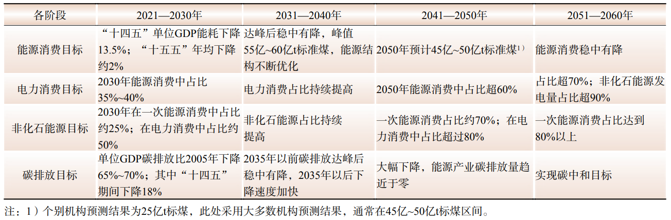 1 “雙碳”目標(biāo)下中國(guó)能源發(fā)展目標(biāo)