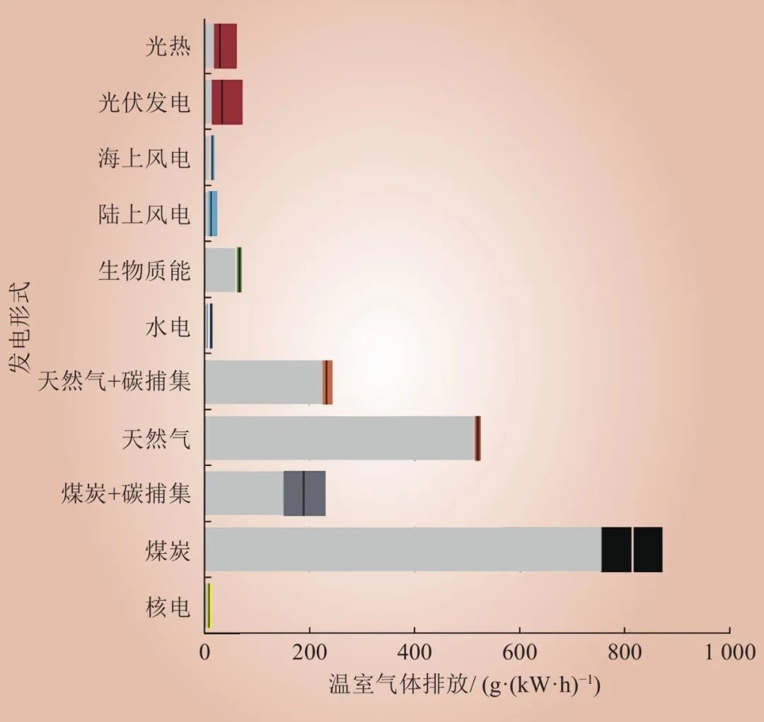 圖1 各類電力全壽期溫室氣體排放(CO2當(dāng)量)