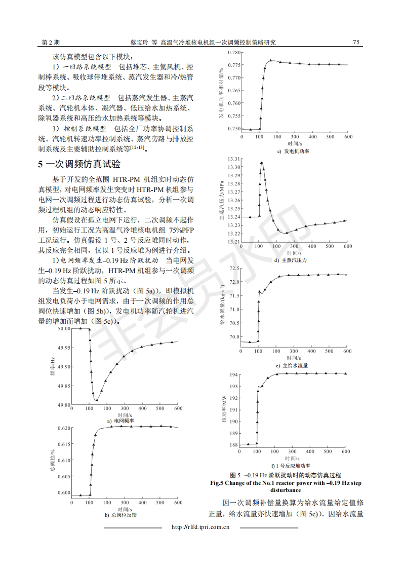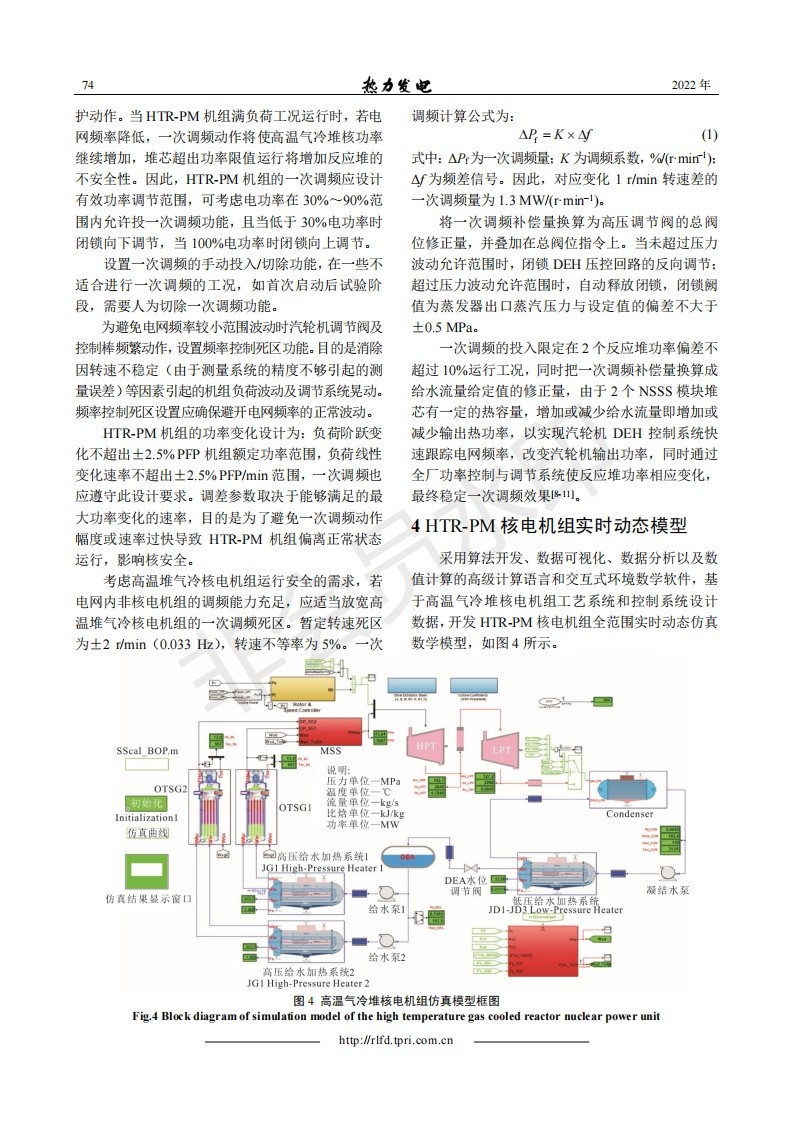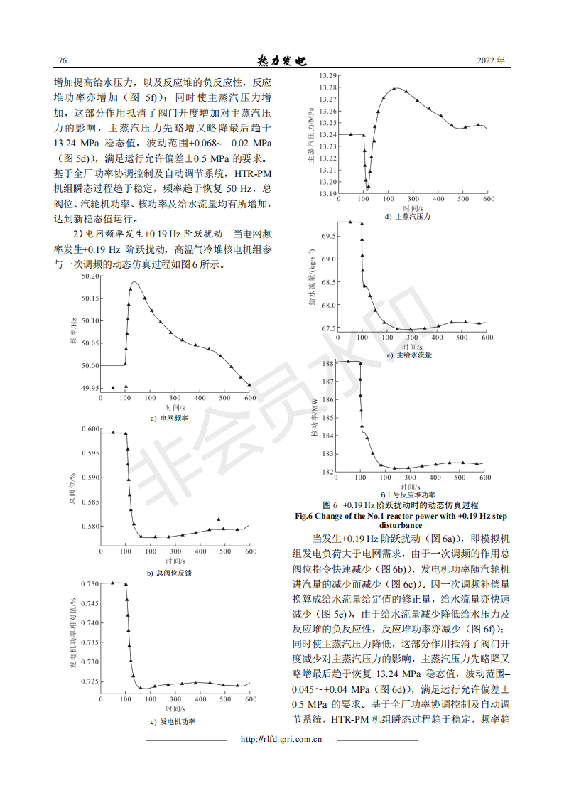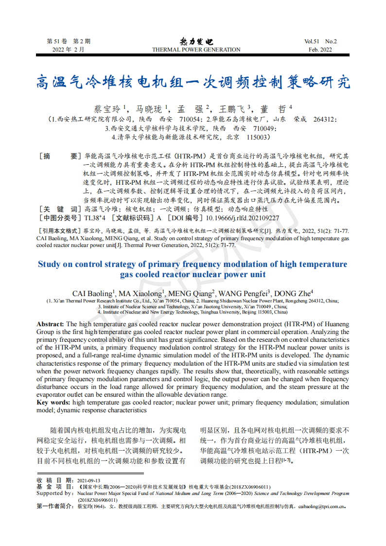 華能高溫氣冷堆核電示范工程(HTR-PM)是首臺商業(yè)運行的高溫氣冷堆核電機組,研究其一次調頻能力具有重要意義。在分析HTR-PM機組控制特性的基礎上,提出高溫氣冷堆核電機組一次調頻控制策略,并開發(fā)了HTR-PM機組全范圍實時動態(tài)仿真模型。針對電網(wǎng)頻率快速變化時,HTR-PM機組一次調頻過程的動態(tài)響應特性進行仿真試驗。試驗結果表明,理論上,在一次調頻參數(shù)、控制邏輯等設置合理的情況下,在一次調頻允許投入的負荷區(qū)間內,當頻率擾動時可以實現(xiàn)輸出功率變化,同時保證蒸發(fā)器出口蒸汽壓力在允許偏差范圍內。