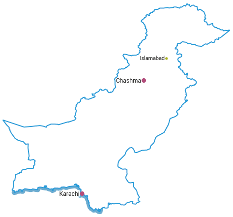 第二臺機組是位于北部旁遮普省的恰希瑪核電站1號機組(CHASNUPP 1),一座325 MWe(凈功率300 MWe)的雙回路壓水反應堆(PWR),由中國核工業(yè)集團公司(CNNC)建造,主體部分由上海核工程研究設計院(SNERDI)根據(jù)秦山1號設計。
