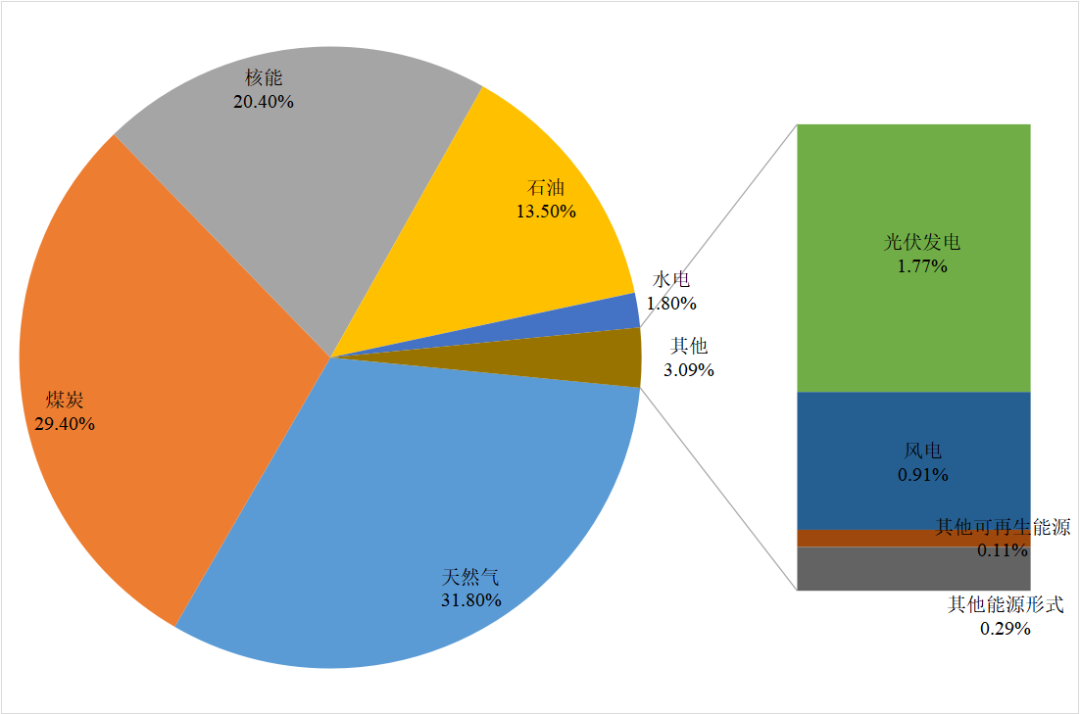 ▲ 2020年烏克蘭電力結構中各種電源占比情況