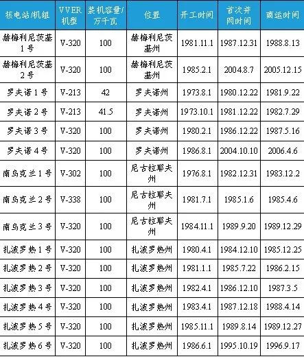 烏克蘭還曾在切爾卡瑟、敖德薩和哈爾卡夫等州各開工建設過一臺VVER-1000機組,但所有機組都在1989-1990年停止了建設。