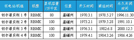 烏克蘭關停的機組有4臺,均是切爾諾貝利核電站的機組,總裝機容量為380萬千瓦。現在切爾諾貝利核電站沒有在運的核電機組。切爾諾貝利核電站是烏克蘭第一座核電站,原先運行的4臺核電機組是蘇聯時期建造的石墨慢化輕水冷卻反應堆中的RBMK技術。