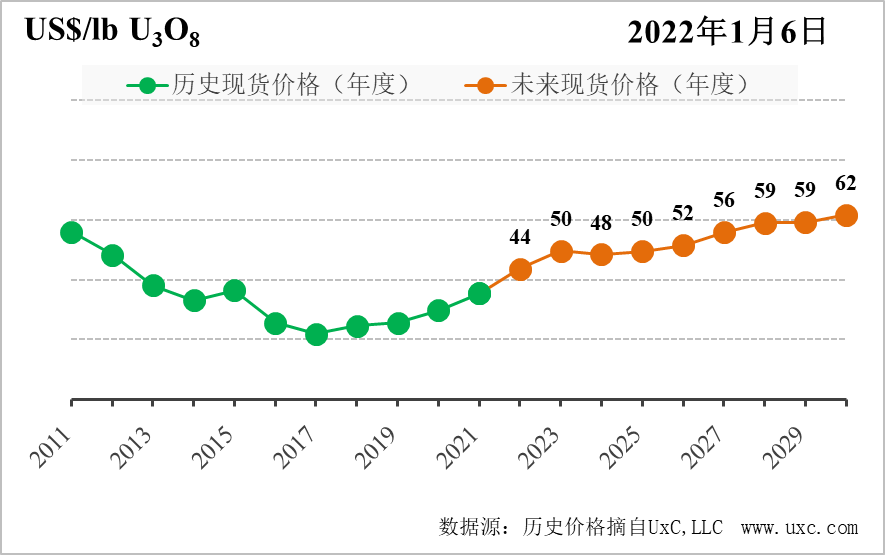 2022年3月8日,中國核能行業協會發布第16期“CNEA國際天然鈾價格預測指數(2022年3月)”。