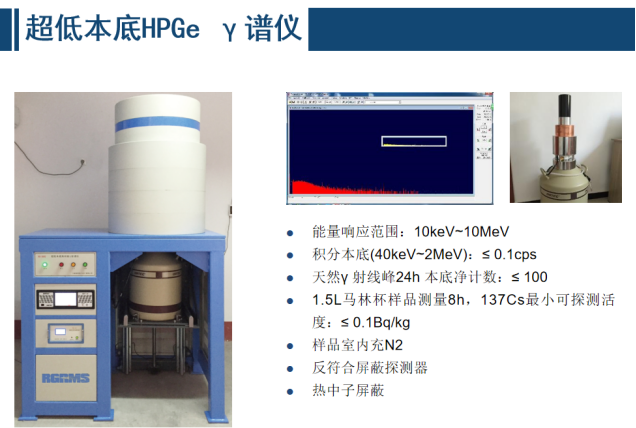 • 實(shí)驗(yàn)室樣品分析測(cè)量設(shè)備 當(dāng)直接測(cè)量法受現(xiàn)場(chǎng)條件制約難于進(jìn)行或其靈敏度難于滿足測(cè)量要求時(shí),通常采用取樣、處理、測(cè)量的實(shí)驗(yàn)室分析方法,應(yīng)特別關(guān)注樣品的代表性和樣品處理方法可能對(duì)測(cè)量結(jié)果產(chǎn)生的影響。介質(zhì)一般包括擦拭樣、空氣、水及水生物、土壤及沉積物、動(dòng)植物及其產(chǎn)品等。監(jiān)測(cè)內(nèi)容包括 α / β / γ 總活度、 α /γ 核素分析、核素活度、沉降率等。常用的監(jiān)測(cè)分析儀器主要包括 α 譜儀、 γ 譜儀、 β計(jì)數(shù)器、液閃計(jì)數(shù)器、電感耦合等離子體質(zhì)譜等。