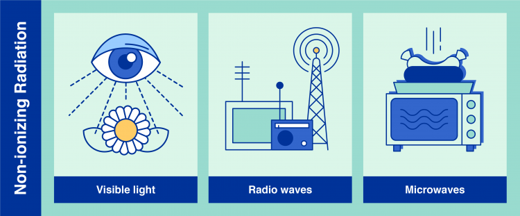 非電離輻射的一些例子是可見光、無線電波和微波(信息圖:Adriana Vargas/IAEA)