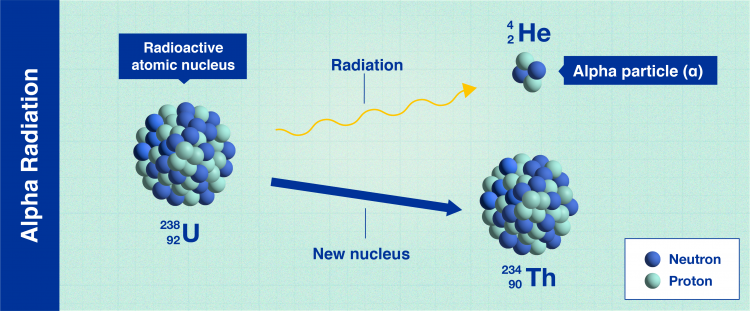 在 α 輻射中,衰變的原子核會釋放出帶正電的重粒子以變得更加穩定。這些顆粒不能穿透我們的皮膚造成傷害,并且通常可以通過使用一張紙來阻止。