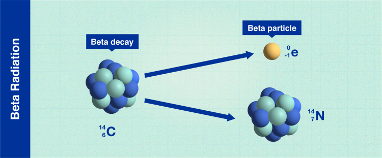 發射β輻射的一些不穩定原子包括氫3(氚)和碳14。氚被用于應急燈中,例如在黑暗中標記出口。這是因為氚的 β 輻射在輻射相互作用時會導致磷光體材料發光,而無需通電。例如,Carbon-14 用于為過去的對象標注日期。