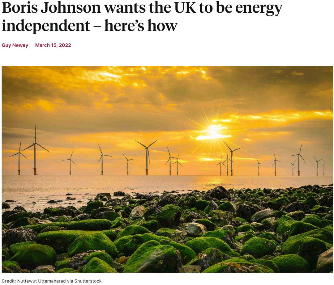 英國Reaction.life網站發表署名Guy Newey的文章,題目是:(Boris Johnson wants the UK to be energy independent – here’s how約翰遜推動英國實現能源獨立:需要這樣做!)