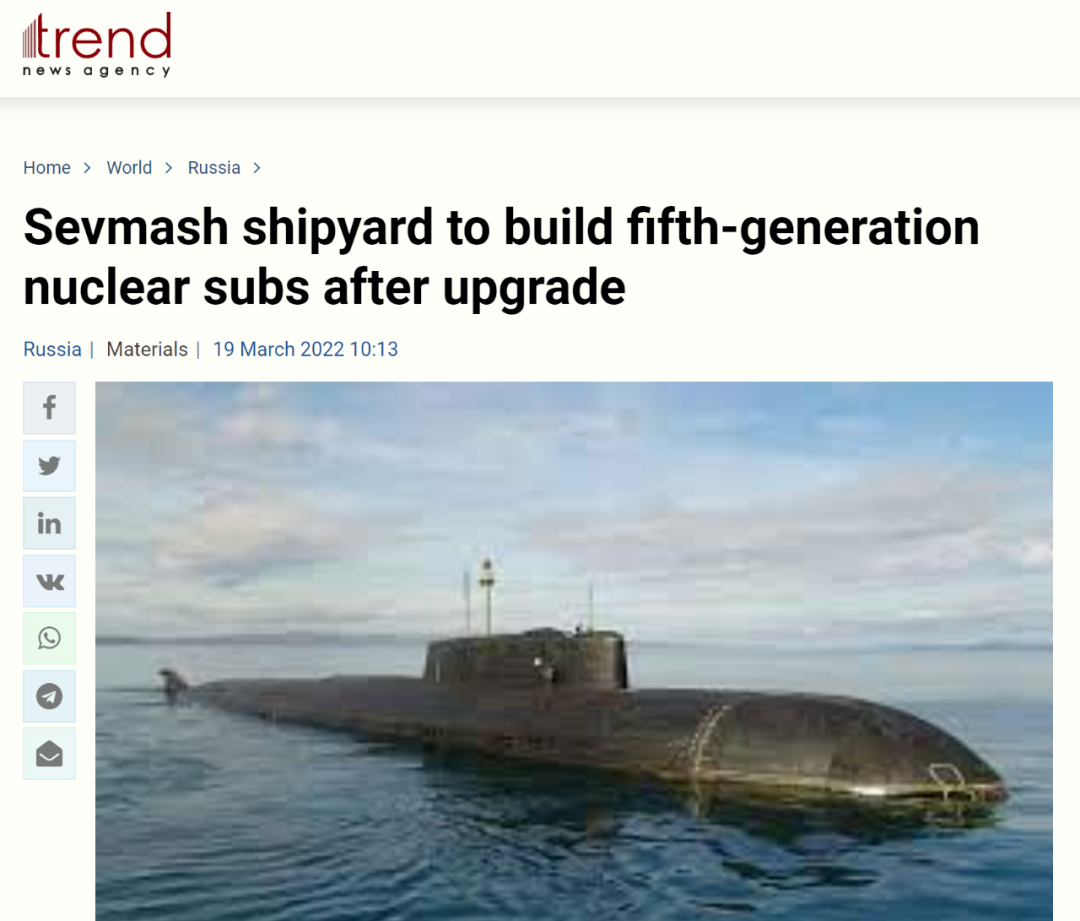 阿塞拜疆趨勢通訊社網站報道俄羅斯要建造第5代核潛艇