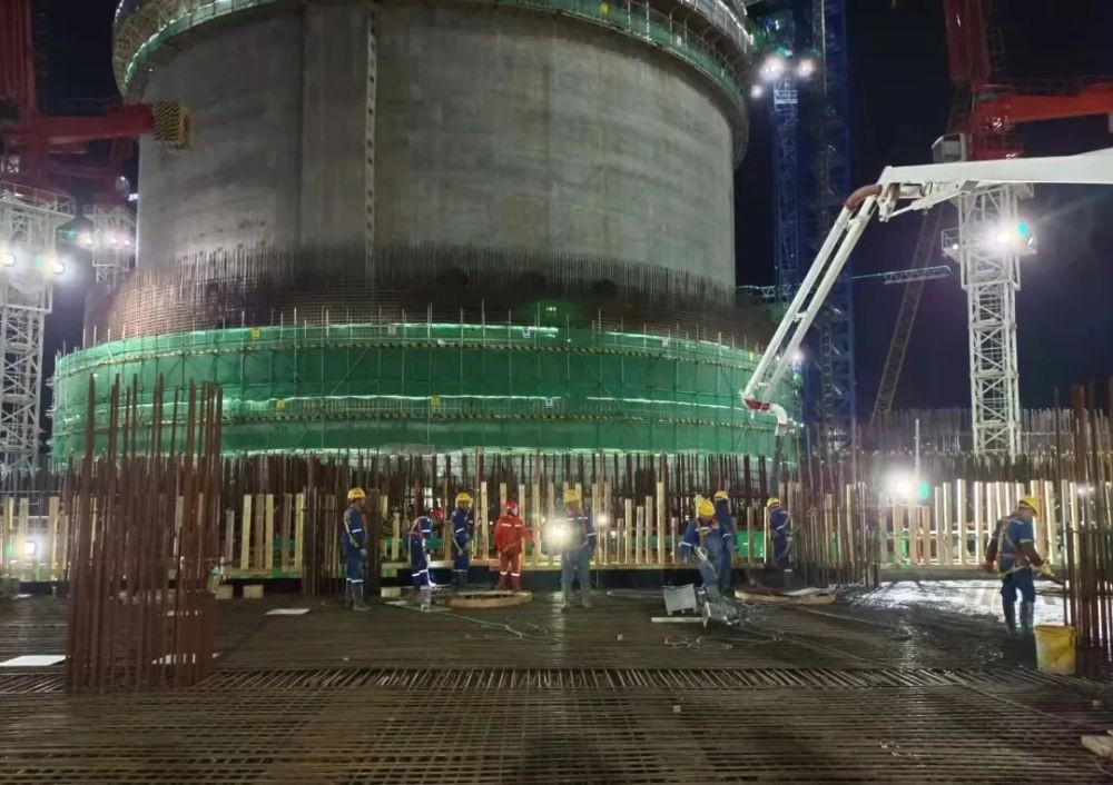 4月2日2時48分,公司完成華龍一號漳州核電2號常規島主廠房0米板全部澆筑,標志著2號常規島主廠房0米以上框架結構全面展開施工,進入整體框架施工階段。此次澆筑采用2、3號0米板同時澆筑的方式,歷時39個小時,澆筑方量共計1703立方。