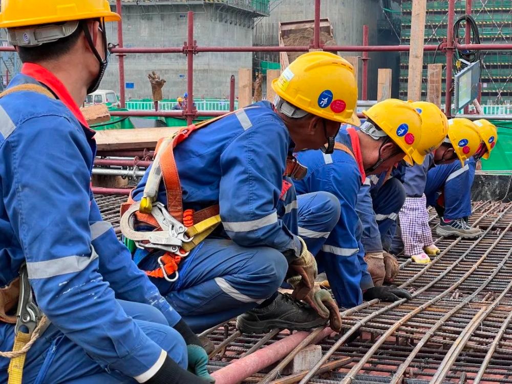 為保證此次節點順利完成,公司漳州核電項目部統籌進度策劃,提前制定管線道路,組織布置布料設備站位;