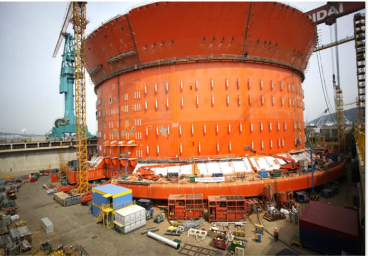 OFNP是一座海上超級核電站,它有110萬千瓦(使用AP1000成熟堆芯設計)和30萬千瓦兩種版本,對應的排水量分別為36.8萬噸和7.6萬噸。