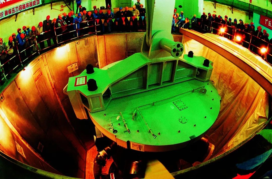 1999年3月31日,秦山二期核電工程1號機組反應堆壓力容器吊裝就位。
