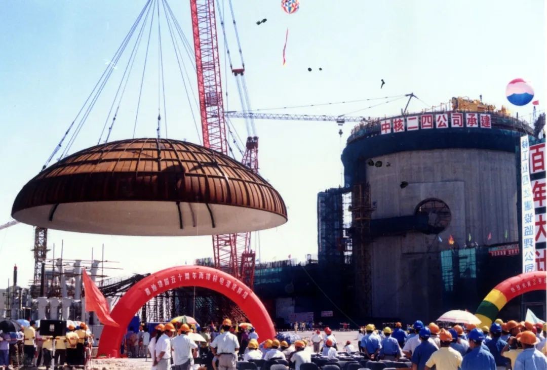 1998年11月10日,秦山二期核電工程1號反應堆廠房實現封頂目標,比二級計劃提前5天。期間,在國內首次采用反應堆廠房安全殼穹頂整體吊裝技術。